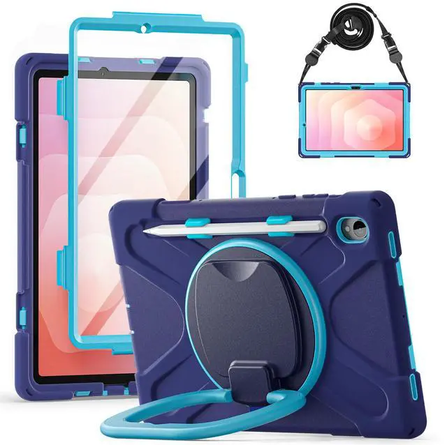 WERLEO Case for Samsung Galaxy Tab S11 11 inch 2025 SM-X730/X736B/X736E/X736U Shockporoof Cover with Built-in Screen Protector, Pencil Holder, Rotating Hand Strap, Stand, Shoulder Strap Navy Blue
