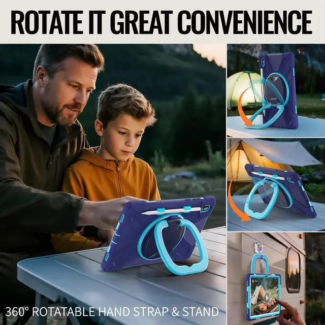 • 360° Rotating Hand Strap and Stand: The Protective Samsung Galaxy Tab S11 11 inch 2025 Case Built-in 360° Rotatable Hand Strap & Kickstand on the back, flexible in Vertical & Horizontal any other angles ideal for watching video, reading or teaching, maximinzely free your hand. Adjustable Hand Strap perfectly suitable uses for all size of hands, adults, students, child