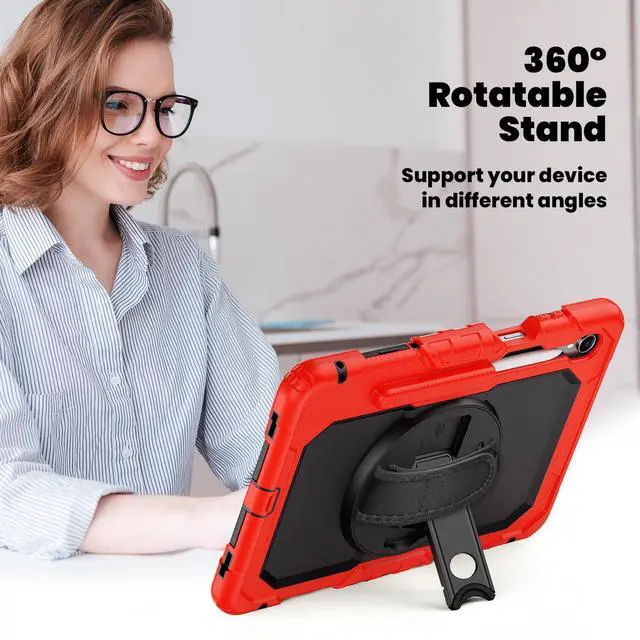 360° Rotating Hand Strap and Stand: The Protective Samsung Galaxy Tab S11 11 inch 2025 Case Built-in 360° Rotatable Hand Strap & Kickstand on the back, flexible in Vertical & Horizontal any other angles ideal for watching video, reading or teaching, maximinzely free your hand. Adjustable Hand Strap perfectly suitable uses for all size of hands, adults, students, child