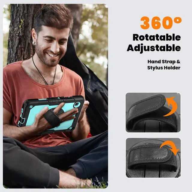 • 360° Rotating Hand Strap and Stand: The Protective Samsung Galaxy Tab A11/A9 8.7 inch Case Built-in 360° Rotatable Hand Strap & Kickstand on the back, flexible in Vertical & Horizontal any other angles ideal for watching video, reading or teaching, maximinzely free your hand. Adjustable Hand Strap perfectly suitable uses for all size of hands, adults, students, child
