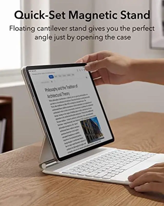 Easy-Set Magnetic Stand: the floating cantilever design allows your iPad Pro 12.9 to float stylishly over your keyboard and gives you the perfect angle just by opening the case
