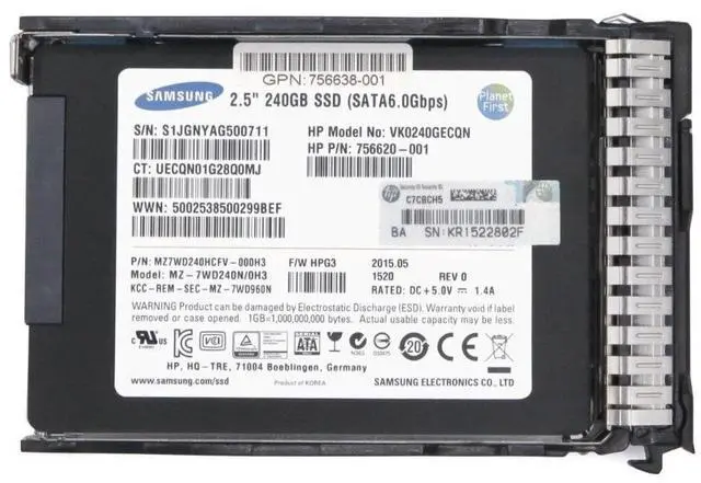 MPN: 756636-B21, 757366-001, VK0240GECQN, 756620-001, MZ7WD240HCFV-000H3, MZ-7WD240N/0H3, MZ-7WD240N, 756638-001, 651687-001, Boot, Read intensive