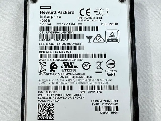 MPN: 868649-001, 651687-001, 873369-004, 0B40021, 873563-001, 873563, EO000400JWDKP, 0B35079, B35079, HUSMM3240ASS204, G8, G9, G10, 873351-B21, 873351-S21, Write, Intensive, Gen8, Gen9, Gen10, Plus, 12G, Remaining, Write, Endurance, 98%, Plus, 2.5