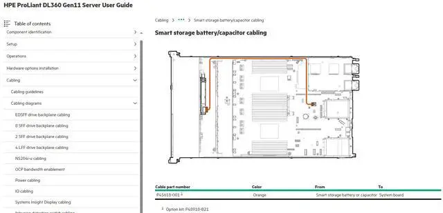 HPE DL360 Gen11 Storage Controller Battery Enablement Cable Kit P48918-B21
