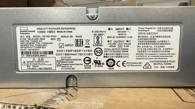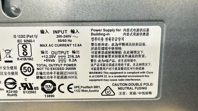 HPE 2650W Platinum BLC7000 Apollo 6000 S6500 CS700 Power Supply PSU 94% 200-240V