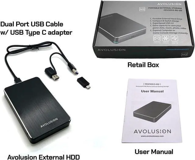 Avolusion M2 Series 1TB USB 3.0 External Portable Hard Drive (For Xbox One X, S)