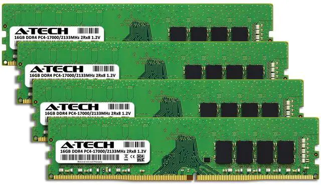 A-Tech 64GB 4x 16GB PC4-17000 Desktop DDR4 2133 MHz DIMM 288-Pin 2Rx8 Memory RAM