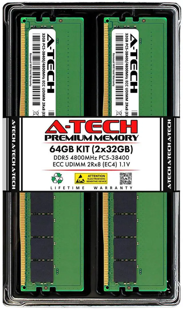(NOT FOR HOME PC!) A-Tech 64GB 2x 32GB 2Rx8 PC5-38400 DDR5 Unbuffered ECC UDIMM Server Memory RAM