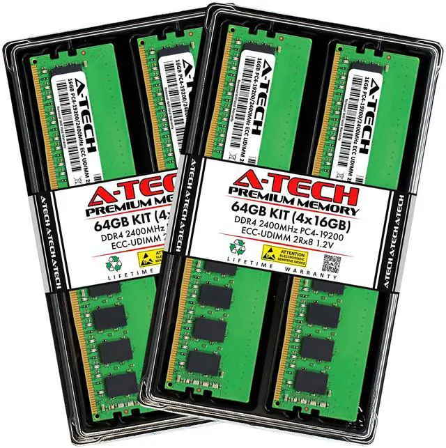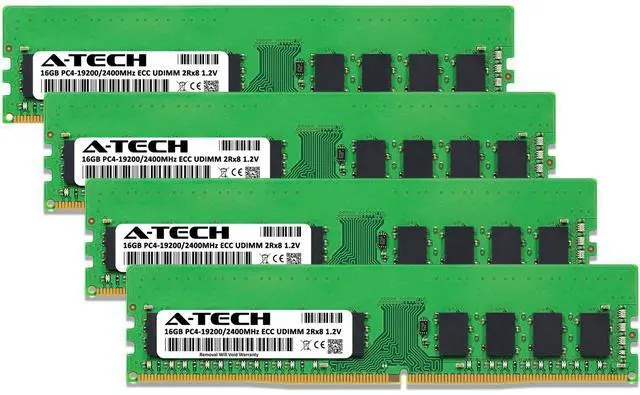 (NOT FOR HOME PC!) A-Tech 64GB 4x 16GB 2Rx8 PC4-19200E DDR4 2400 MHz ECC UDIMM Server Memory RAM