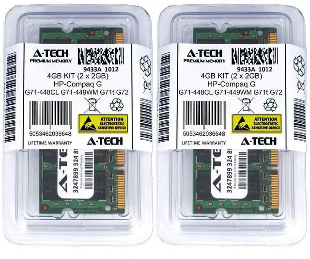 4GB KIT 2 x 2GB HP Compaq G71-448CL G71-449WM G71t G72 G72-214CA Ram Memory