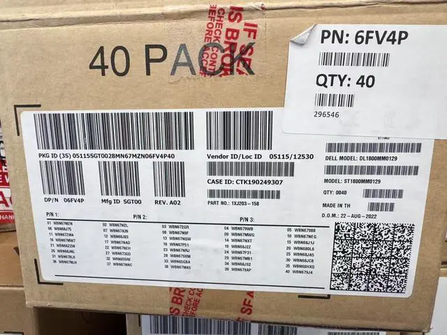 (NOT FOR HOME PC!) SEAGATE ST1800MM0129 1.8TB 2.5" 256MB CACHE SAS 12.0GB/S HDD 6FV4P 1XJ203-158