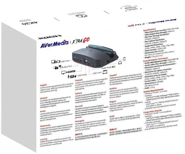 AverMedia X'TRA Go Capture Dock handheld records up to 4K 30 FPS GC515Black