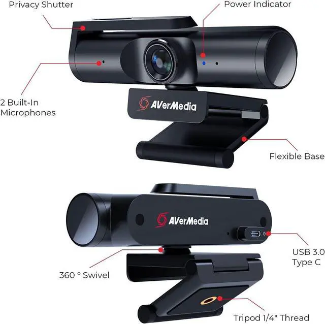 AVerMedia PW513 4K UHD Webcam USB 3.0 Camera for Streaming & Video Calls