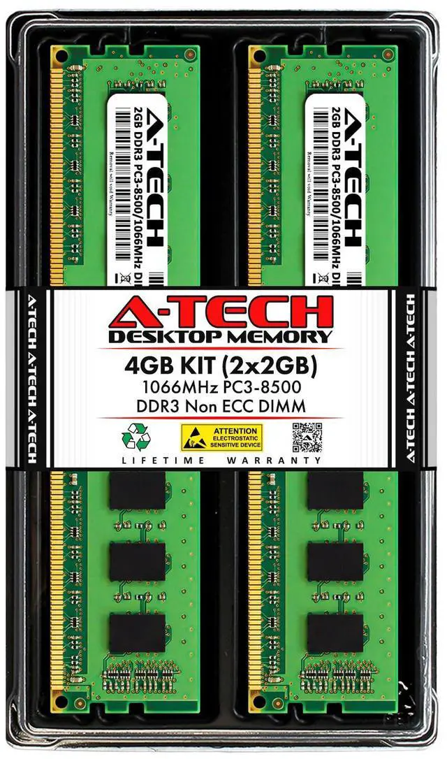 A-Tech 4GB 2 x 2GB PC3-8500 Desktop DDR3 1066 MHz 240-Pin DIMM Memory RAM 4G 2G