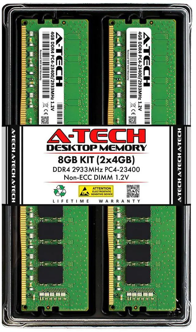 A-Tech 8GB 2x 4GB PC4-23400 Desktop DDR4 2933 Non-ECC DIMM 288-pin Memory RAM