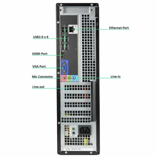 Connectivity: USB 2.0, VGA, USB 3.0, DisplayPort, Gigabit Ethernet Port, 1/8" Line-in/Microphone, 1/8" Speaker Out