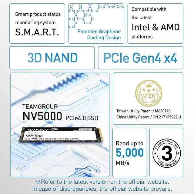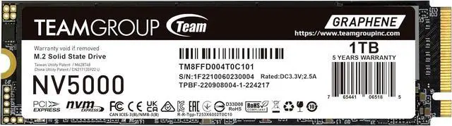 TEAMGROUP NV5000 1TB SLC Cache NVMe PCIe Gen4x4 M.2 2280 Laptop Desktop SSD
