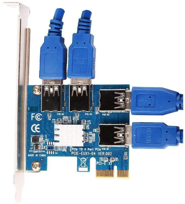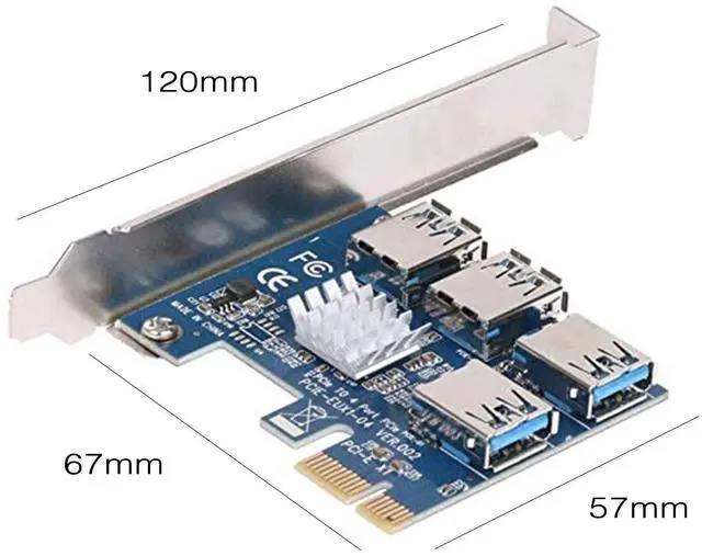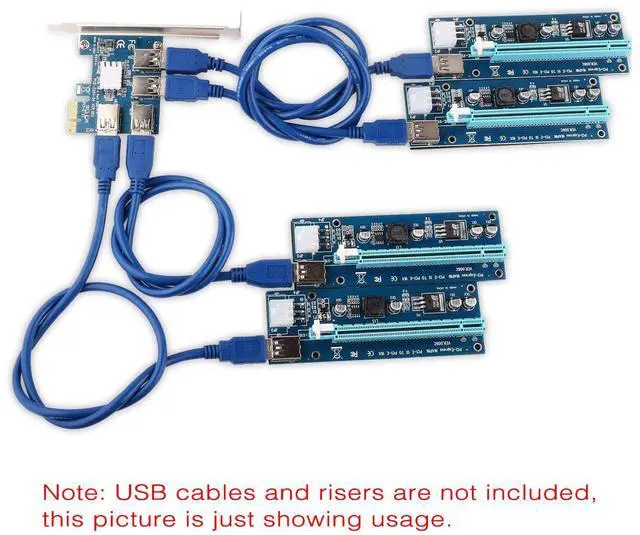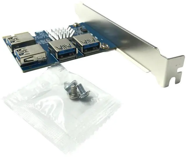 AAAwave PCI Express 1X to 16X Riser Card 1 to 4 USB3.0 Multiplier Hub Adapter