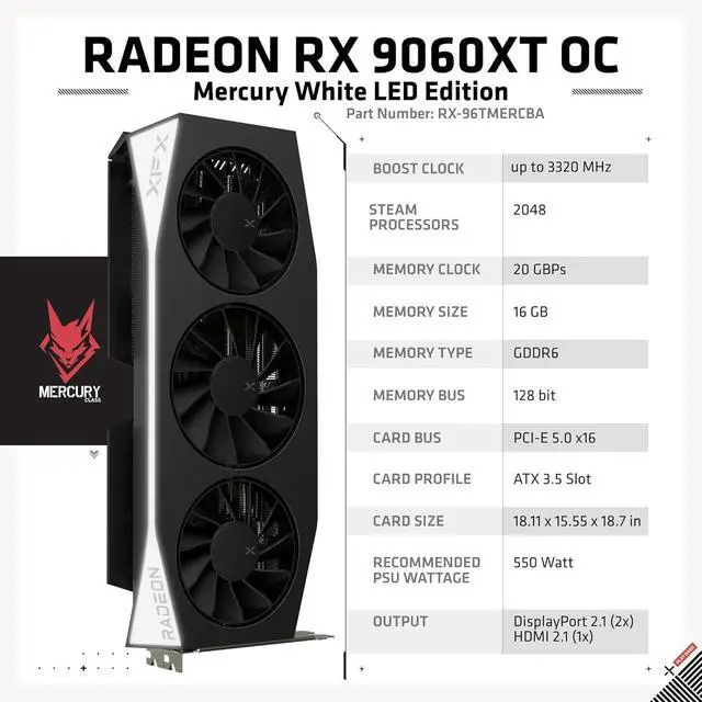 XFX Mercury AMD Radeon RX 9060 XT OC Gaming Edition with 16GB GDDR6 AMD RDNA 4