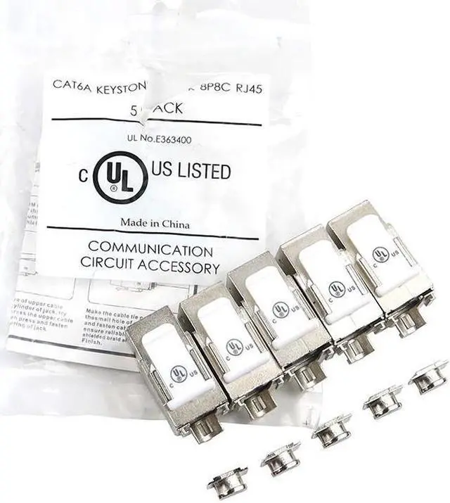 VCELINK Tool-Less CAT6A Ethernet to 8P8C RJ45 Keystone Jacks 5 Pieces Package E363400.