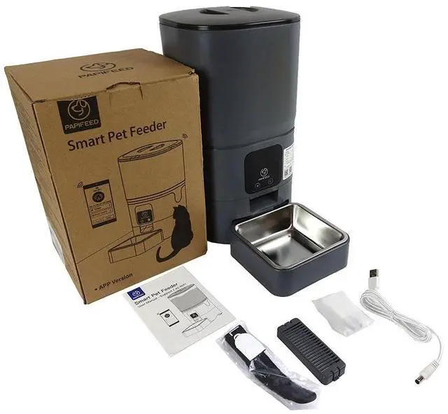 Papifeed 6L 202oz Gray Dual Power Supply WiFi Control Small Dogs and Cats Automatic Pet Feeder.