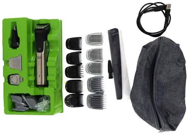 Please note, this set includes: 1x All-in-One Trimmer 7000 Series, 1x Travel Case, 1x Set of various attachments, 1x USB-A Charging Cable, 1x Comb, 1x Mini brush. Power Adapter not included!