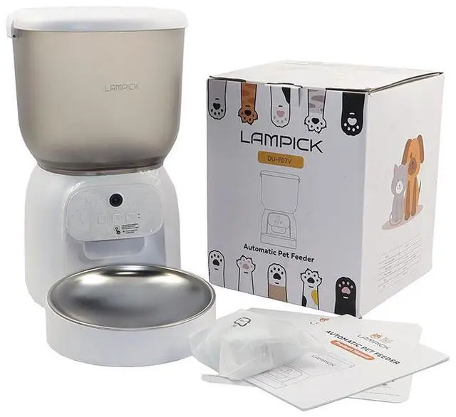 Lampick DU-F07V 4 L 135 fl oz 1080p Video Camera WiFi Control Dual Power Supply Automatic Pet Feeder.