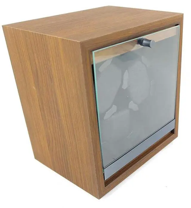 Rectangular Modern Walnut Faux Leather Natural Wood LED Lighting Table Top Watch Winder JWW013M.
