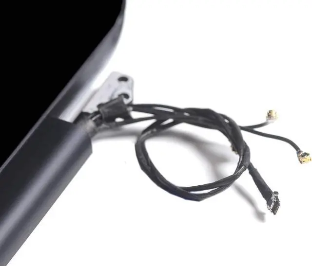 Complete display assembly: LCD panel, FaceTime camera & cable, Airport antenna cables, LVDS cable, hinges, and clutch cover
