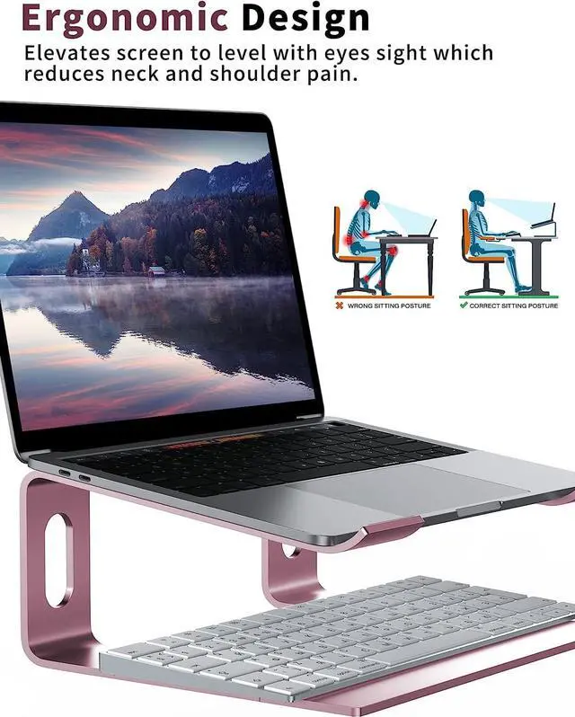 Durable & Protective - Metal appearance made of thickened aluminum alloy, strongly durable. The rubbers on the top and bottom of holder ensure it sticks tightly to your laptop and desk, and protect your computer and desktop from scratches.