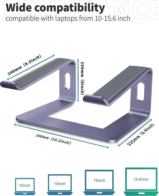 Suit for any laptop 10 to 15.6 inches - The laptop stand fits all laptops 10 to 15.6 inches, such as notebooks PC computers 10 inches, 11 inches, 12 inches, 13 inches, 13.3 inches, 14 inches, 15 inches, 15.4 inches, 15.6 inches, etc. NOT SUIT FOR 15Surfacebook