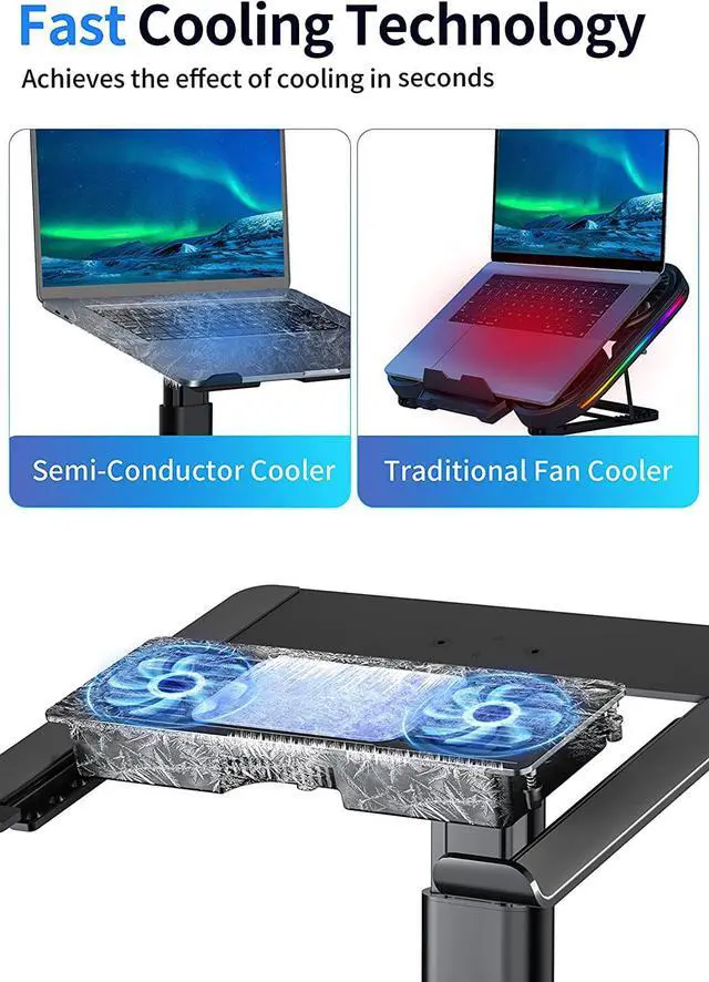 Cooling Fast: By semi-conductor technology, the laptop cooling pad achieves the effect of cooling in seconds.