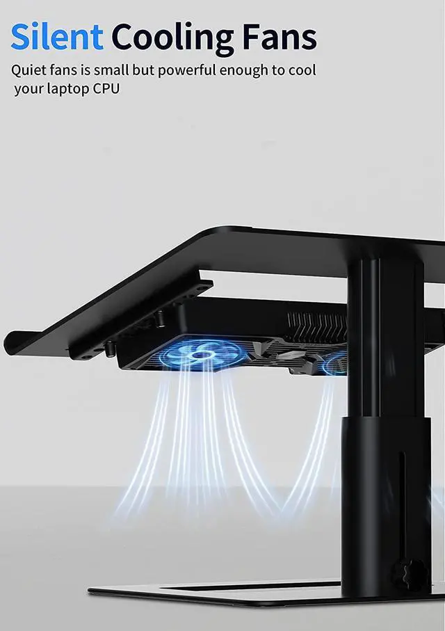 Adjustable Cooler Pad & Height: You can adjust the cooler pad according to the position of the CUP. And you can easily to adjuste the height of the laptop stand.