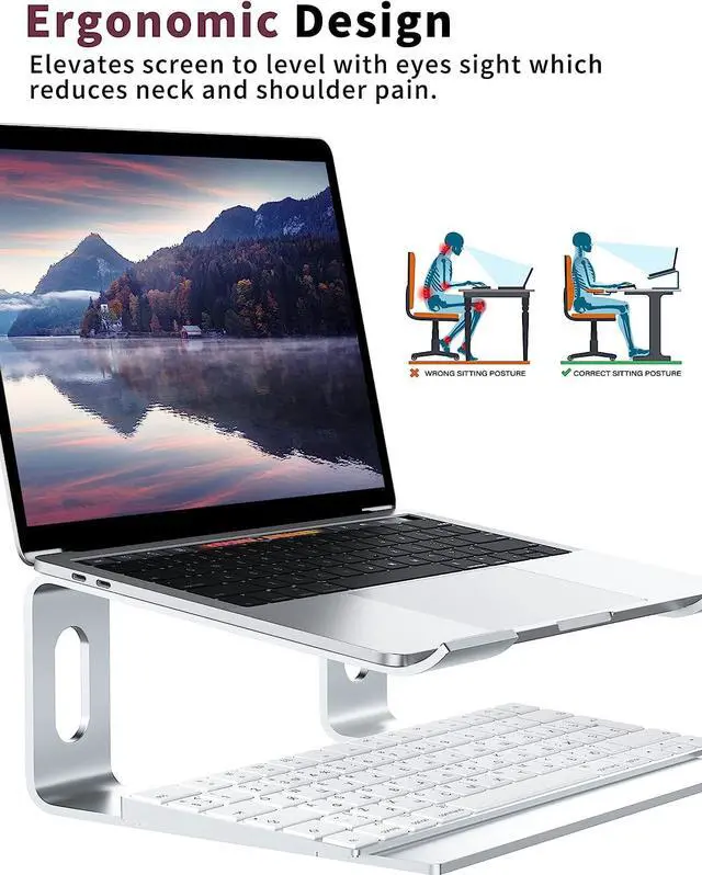 Ergonomic Design - Elevates your laptop height by 6 inches, a perfect height for your eye, neck and shoulder.