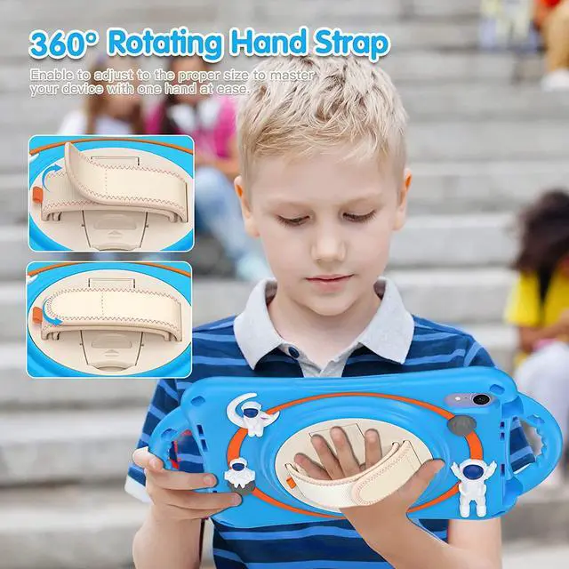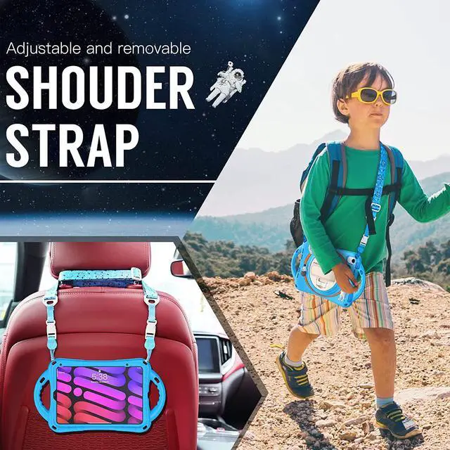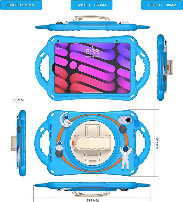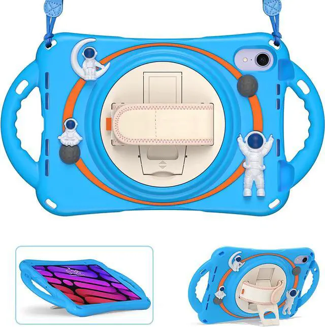 FEATURES: Built-in Kickstand is 360 degree rotating, you can adjust your iPad Mini 6 to whatever angle you want, perfect for watching videos and chatting; Convenient Handle Grip enable to hold on and carry your iPad Adjustable velcor hand strap perfect for kids and adults. Adjustable and detachable Shoulder belt is safe and fashion you can carry tablet Built-in elastic Pencil Holder