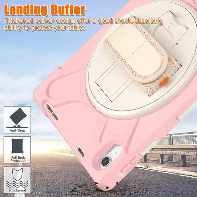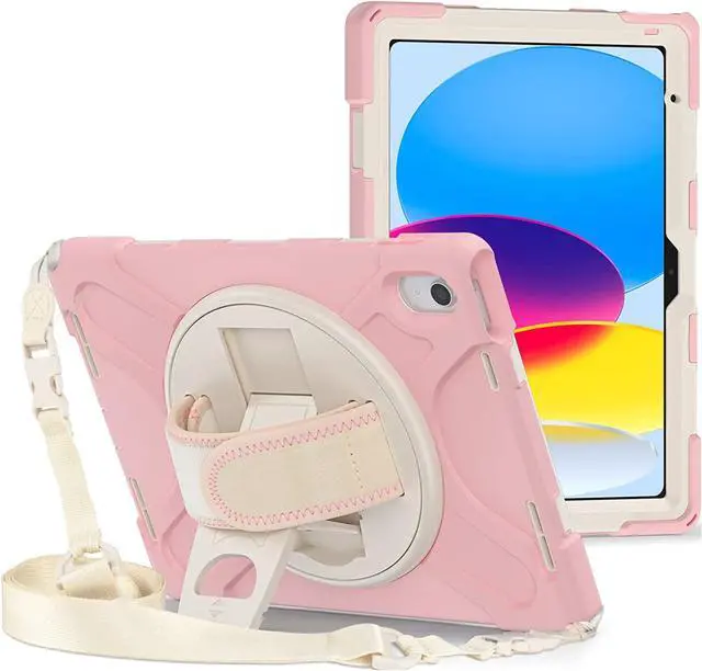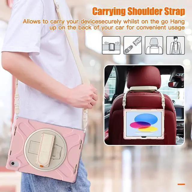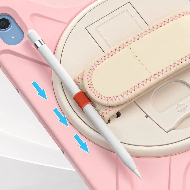 FEATURES: Built-in Kickstand is 360 degree rotating, you can adjust your 10th generation iPad to whatever angle you want, perfect for watching videos and chatting; Built-in elastic Pencil Holder makes it easy to pull out and store your Apple pencil Adjustable velcor hand strap allows big hand and small hand, perfect for kids and adults. Adjustable and detachable Shoulder belt is very convenience, safe and fashion you can carry tablet with should belt wherever you want