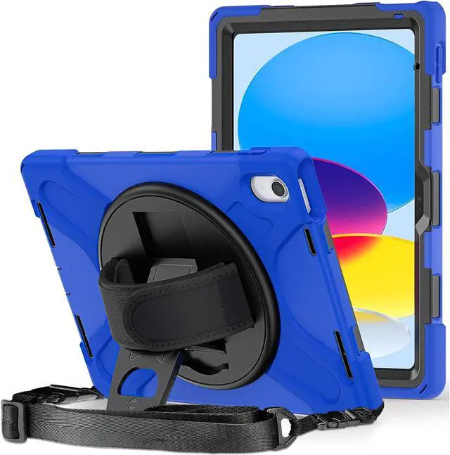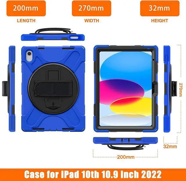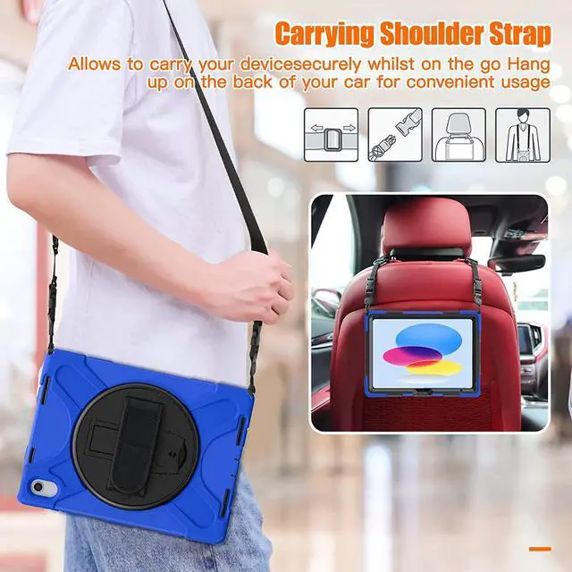 FEATURES: Built-in Kickstand is 360 degree rotating, you can adjust your 10th generation iPad to whatever angle you want, perfect for watching videos and chatting; Built-in elastic Pencil Holder makes it easy to pull out and store your Apple pencil Adjustable velcor hand strap allows big hand and small hand, perfect for kids and adults. Adjustable and detachable Shoulder belt is very convenience, safe and fashion you can carry tablet with should belt wherever you want
