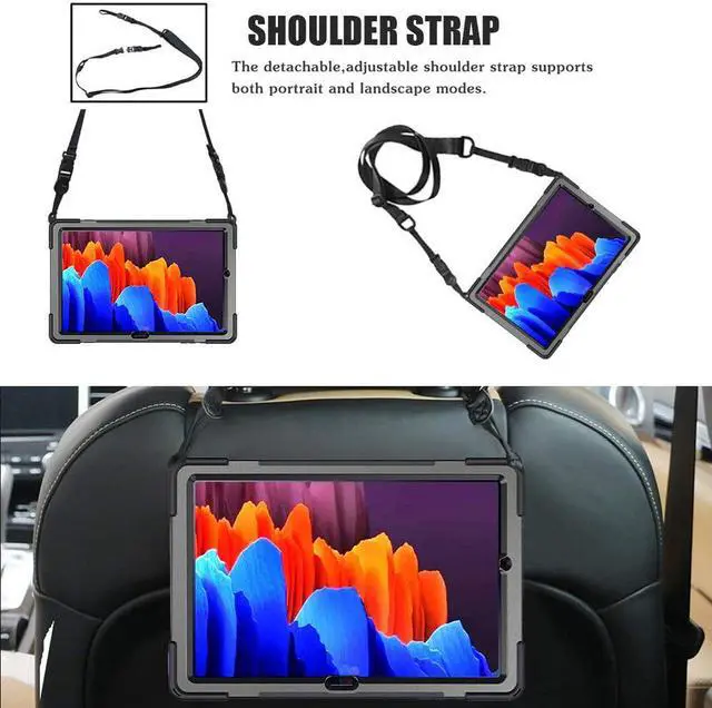 FEATURES--Connected with 360° turntable built-in kickstand, you can adjust your galaxy tab S8 Plus/S7 Plus 12.4 inch tablet, perfect for watching videos and chatting. Adjustable hand strap allows big hand and small hand, perfect for kids and adults Adjustable and detachable Shoulder belt is very convenience and safe. You can carry tab S8 plus 12.4 inch tablet 2020 with should belt wherever you want