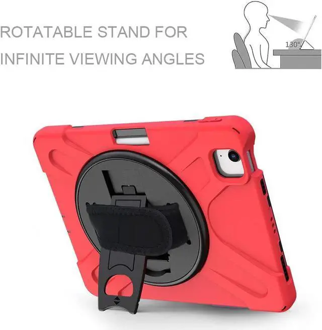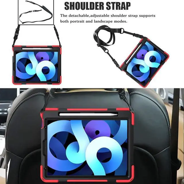 FEATURES: Built-in Kickstand is 360 degree rotating, you can adjust your New iPad to whatever angle you want, perfect for watching videos and chatting; Built-in elastic Pencil Holder makes it easy to pull out and store your Apple pencil store your Apple Pencil Adjustable velcor hand strap allows big hand and small hand, perfect for kids and adults. Adjustable and detachable Shoulder belt is very convenience, safe and fashion you can carry tablet with should belt wherever you want