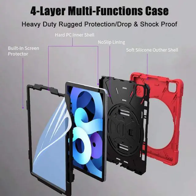 Full Body Protection-With 3 layers design silicone outer frame and 2 pieces Combination of hard reinforced inner shell, this ipad Air 4th generation case is shockproof and help protector your ipad. Perfect for adults and kids
