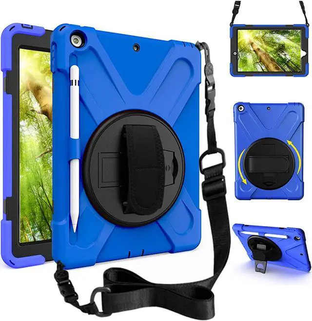 Rugged Case: Built-in Kickstand is 360 degree rotating, you can adjust your New iPad to whatever angle you want, perfect for watching videos and chatting; Built-in Pencil Holder makes it easy to pull out and store your Apple pencil store your Apple Pencil Adjustable velcor hand strap allows big hand and small hand, perfect for kids and adults. Adjustable and detachable Shoulder belt is very convenience, safe and fashion you can carry tablet with should belt wherever you want
