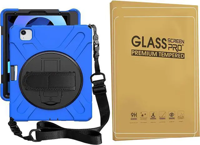 iPad Air 4th Generation 10.9 Case 2020, iPad Pro 11 inch Case 2021/2020/2018 with Glass Screen Protector Screen Pencil Holder Stand Hand Strap Shoulder Belt, Blue