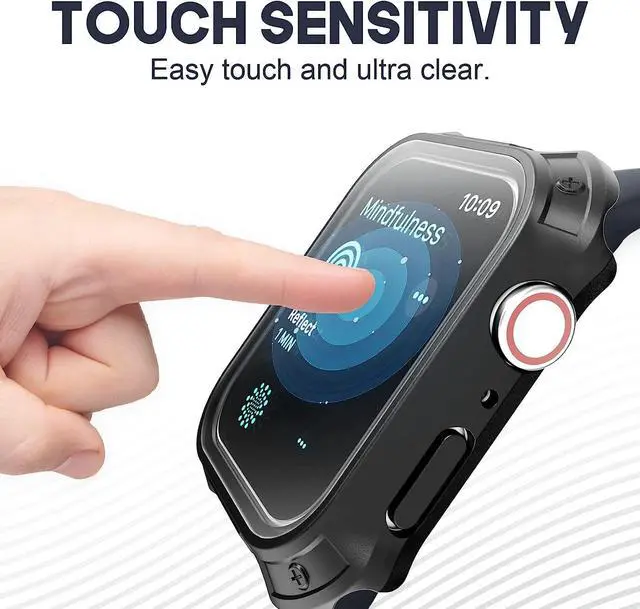 Compatible Models Integrated with hard PC shell and 9H hardness tempered glass screen protector. This apple watch series 8/7 screen protector compatible with iWatch Series 8/7 45mm. (NOT INCLUDE watch and band)