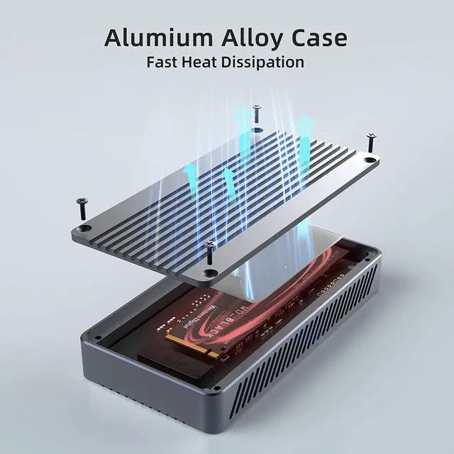 Extensive Compatibility. ACASIS M.2 NVMe SSD Enclosure built-in Intel JHL7440 chip, adopts dual-chip master control,equipped with 40Gbps Type-C interface.The NVMe Enclosure compatible with USB 4/3.2/ 3.1/ 3.0/ 2.0 at respective speed limits to meet a variety of work and daily needs.
