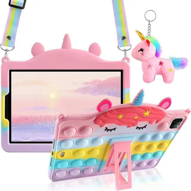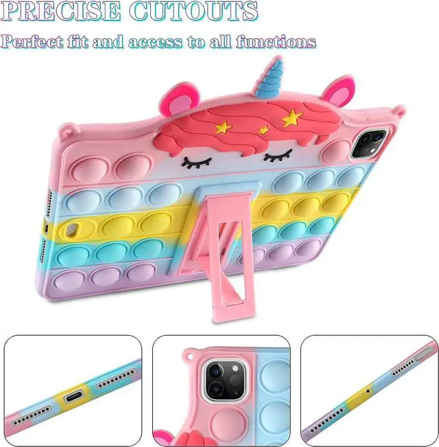 Silicone Case with Kickstand/ Lanyard/ KeychainHigh-quality silicone material brings a soft touch to this iPad pro 11 inch case, protects your tablet from bumps and scratches. Kickstand design is useful which can be used as horizontal stand makes you more convenient to read , browse website, watch movies or face video with friends. This ipad pro 11 inch case also come with lanyard and cute key chian which will convenient to carry-on ipad.