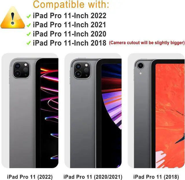 Compatible ModelDesigned for New iPad Pro 11 inch 2022 4th Generation and iPad Pro 11 inch 2021 3rd Generation (Model: A2377 A2459 A2301 A2460) and iPad Pro 11 inch 2020 2nd Generation (Model: A2228 A2231 A2068 A2230) and iPad Pro 11 inch 2018 1st Generation (Model: A1980 A2013 A1934 A1979), Please confirm your iPad model before you order this case. [No include screen protector]