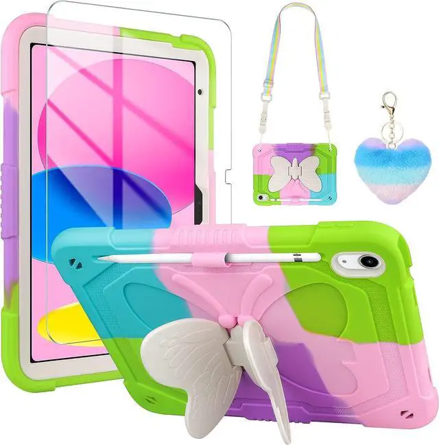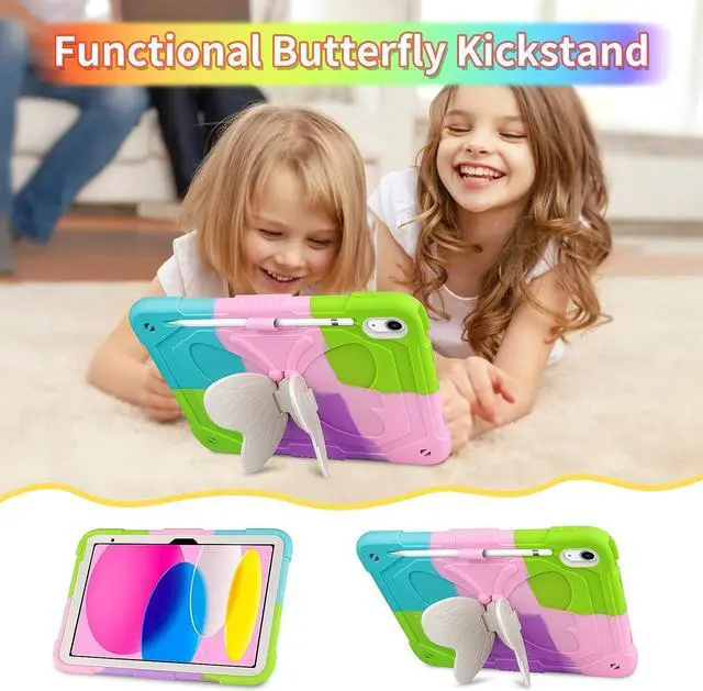 Nice iPad Case for ChildrenThe butterfly kickstand and cute keychain are unique and eye-catching, bringing joy to every child and making it more convenient for them to use tablets in their daily life which will be a special & practical children's holiday gift, suitable for kids girls boys or teens using. Any defective for this iPad 10th generation case, please feel free to message us, we will offer you the suitable solution within 1 working day.