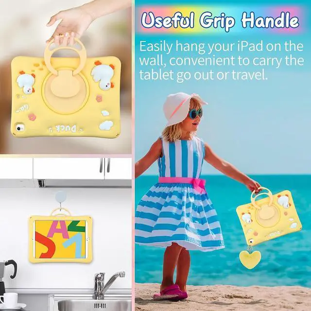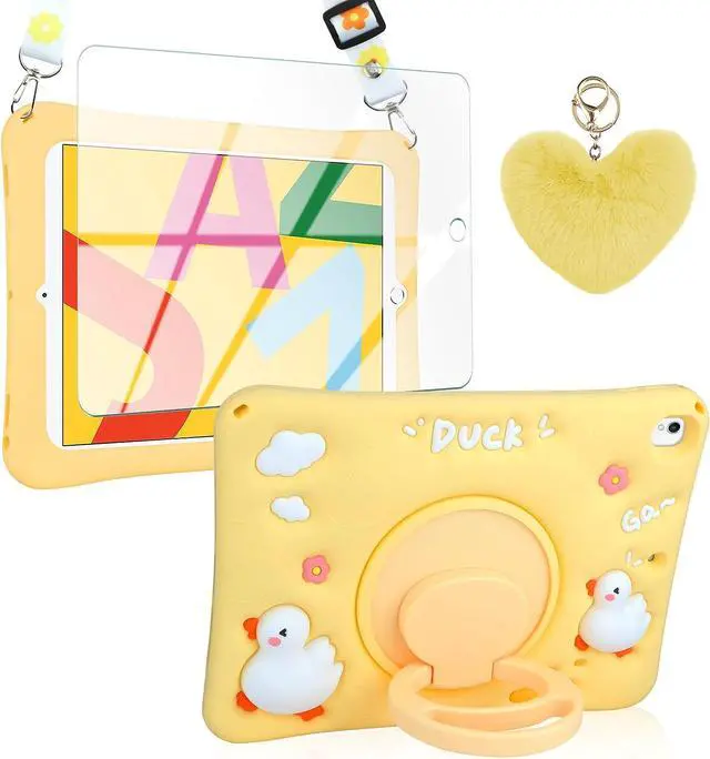 Silicone Case with Lanyard & KeychainHigh-quality silicone material brings a soft touch to this ipad 9.7 case, protects your tablet from bumps and scratches, also come with a detachable & adjustable shoulder straps, which will convenient to carry the tablet go out or travel, the cute heart key chain will bring joys to the children, will be a special & practical children's holiday gift, suitable for kids girls boys or teens using.