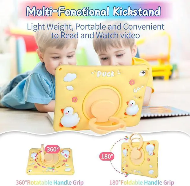 360 °Rotatable & 180° Foldable Handle KickstandThe mutil-functional kickstand design is useful which can be used as horizontal and vertical stand makes you more convenient to read , browse website, watch movies or face video with friends, also come with handle and cute key chain which will convenient to carry-on ipad.