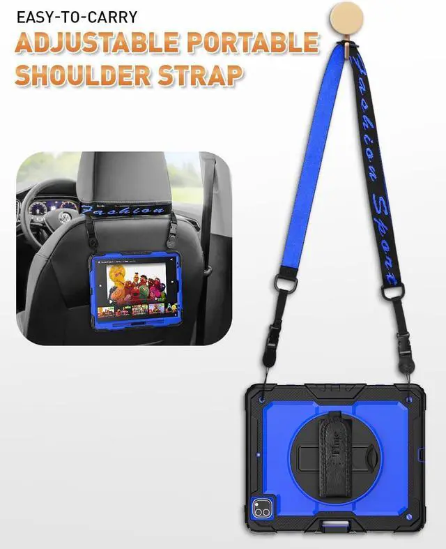 Stand + Shoulder Strap \u2014 The gorgeous 12.9 inch Liquid Retina XDR display is an amazing way to watch movies or draw your next masterpiece. However, it also needs a free display angle. This case provides a bracket that can rotate 360 stand and adjustable length shoulder strap. The stand can provide multi -angle support. The shoulder strap can hang your iPad Pro somewhere.